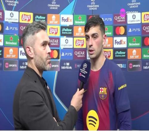本赛季欧冠联赛阶段第6轮,巴萨主场2-1战胜法兰克福,巴萨中场佩德里赛后接受了TNT墨西哥频道的采访。
