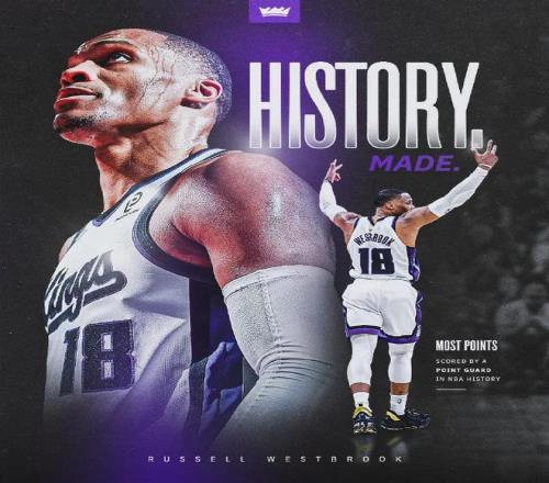 国王102-129不敌太阳,本场威少投篮12中6,其中三分球3中1,罚球5中4独揽17分9板6助1断,就此生涯总得分来到26711分登顶NBA史上控卫得分榜,罗伯特森26710分、库里26107分、保罗23058分,以及利拉德22598分紧随其后。